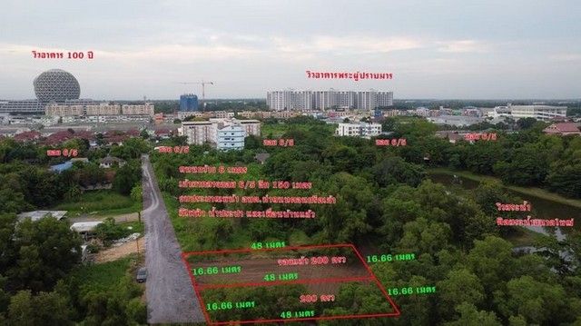 ขายด่วน ที่ดินสวย เนื้อที่ 200 ตร.วา คลองสาม ใกล้วัดพระธรรมกาย วิวอาคารร้อยปี