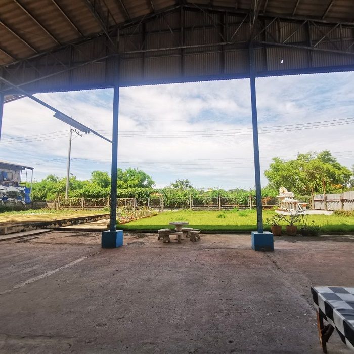 (เคยเป็นโรงงานเหล็กมาก่อน ปัจจุบันมีออฟฟิศ พร้อมห้องน้ำ และมีโรงเก็บเหล็ก 2 ชั้น อยู่ในพื้นที่ มีหลังคาประมาณ 2/3 ของที่ดินทั้งหมด)