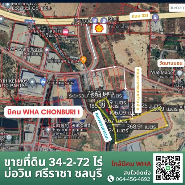 ขายด่วน ที่ดินใกล้นิคม WHA CHONBURI 1 เหมาะสร้างโรงงาน โกดังสินค้า ทำเลดี ใกล้ปั้มเชลล์