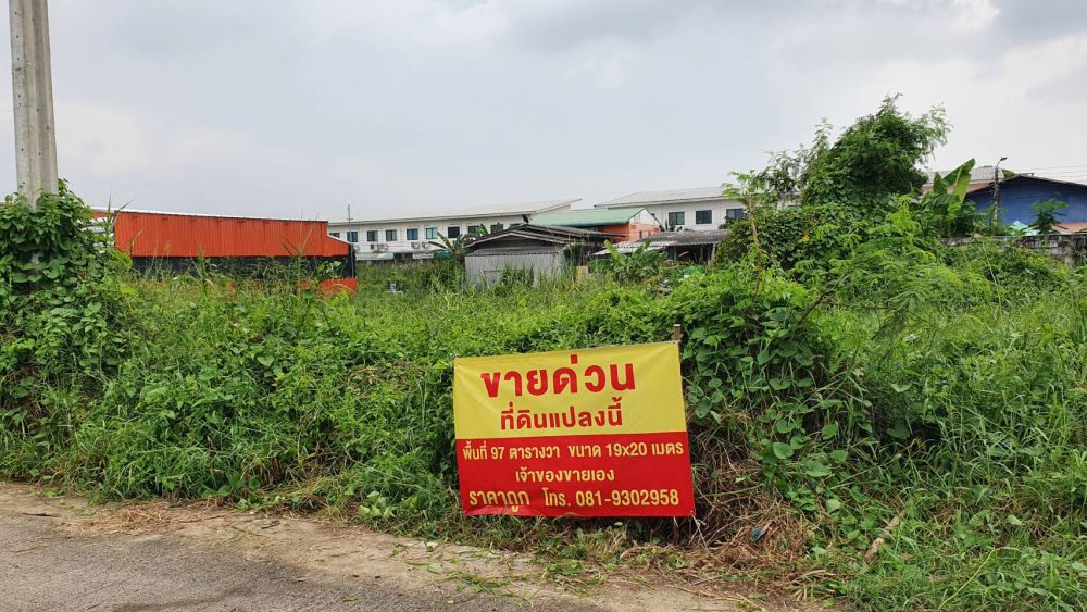 ขายด่วน ที่ดินเปล่า 97 ตรว. หลังตลาดสมบัติบุรี ซอยจ่าพยนต์ 2 บางบัวทอง นนทบุรี ราคา 20,000/ตรว. ลดเหลือ 1.8 ล้านบาท (18,556/ตรว.)