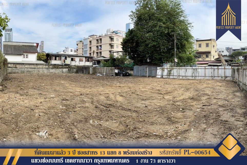 ขายที่ดินถมมาแล้ว 3 ปี ขนาด 173 ตารางวา ซอยสาทร 13 แยก 8 ยานนาวา พร้อมก่อสร้าง