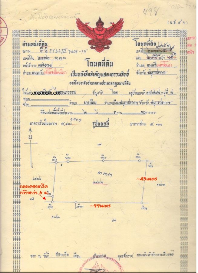 3.รับโอนแปลงหลัก 1110 ตรว. (แปลงที่3 โฉนดเลขที่ 71651) ขนาดที่ดิน: กว้าง 45x99ม.โดยประมาณ