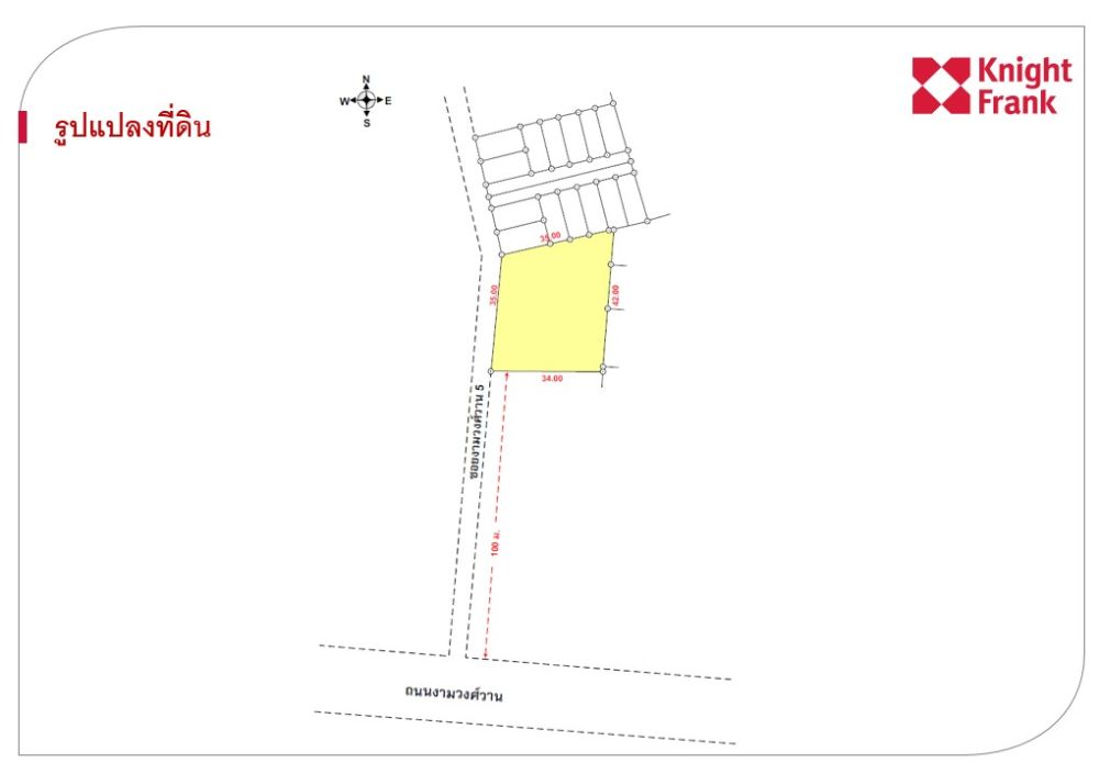 หน้ากว้าง : สภาพด้านหน้าที่ดินติดถนนในซอยงามวงศ์วาน 5 มีความกว้างโดยประมาณ 35 เมตร และความลึกโดยประมาณ 35 เมตร ปัจจุบันไม่มีการใช้ประโยชน์บนที่ดินแปลงนี้ ยังคงสภาพเป็นที่ดินเปล่า ระดับเสมอถนนด้านหน้า
