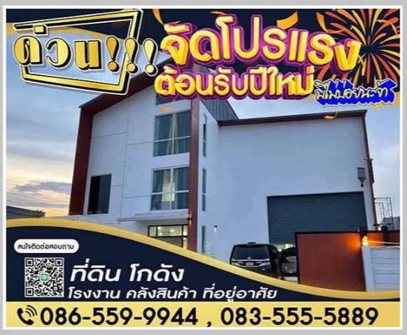ขายโกดัง โรงงาน บางบัวทอง-นนทบุรี ราคาถูก 1.6 ลบ.