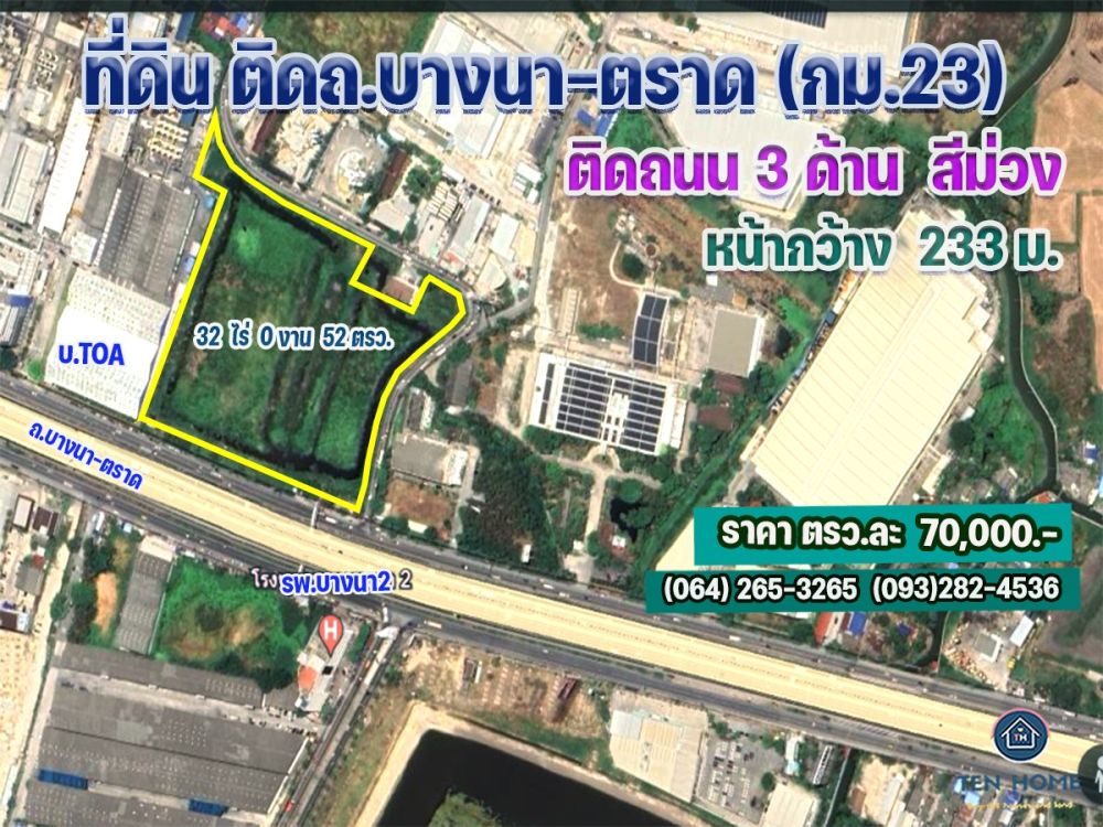 L30-ขายที่ดิน ผังสีม่วง ติดถนนใหญ่ บางนา-ตราด (กม.23)