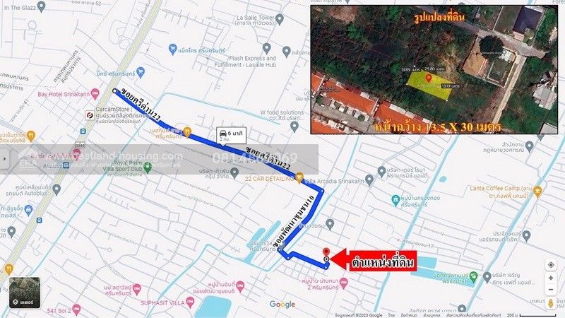 ขายที่ดินเปล่า ถนนศรีนครินทร์ ซ.ศรีด่าน 22 (ซอยพัฒนาชุมชน10)ตำบลบางแก้ว อำเภอบางพลี สมุทรปราการ