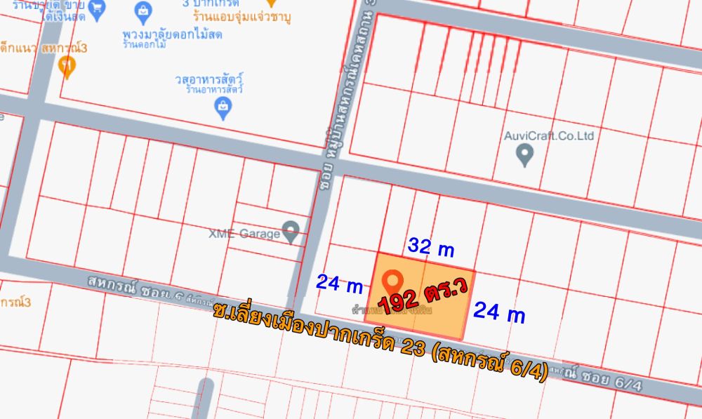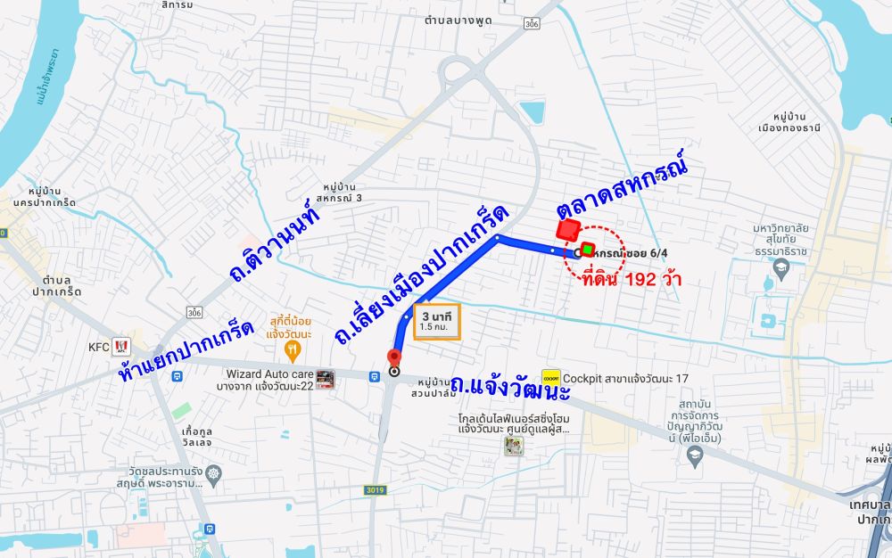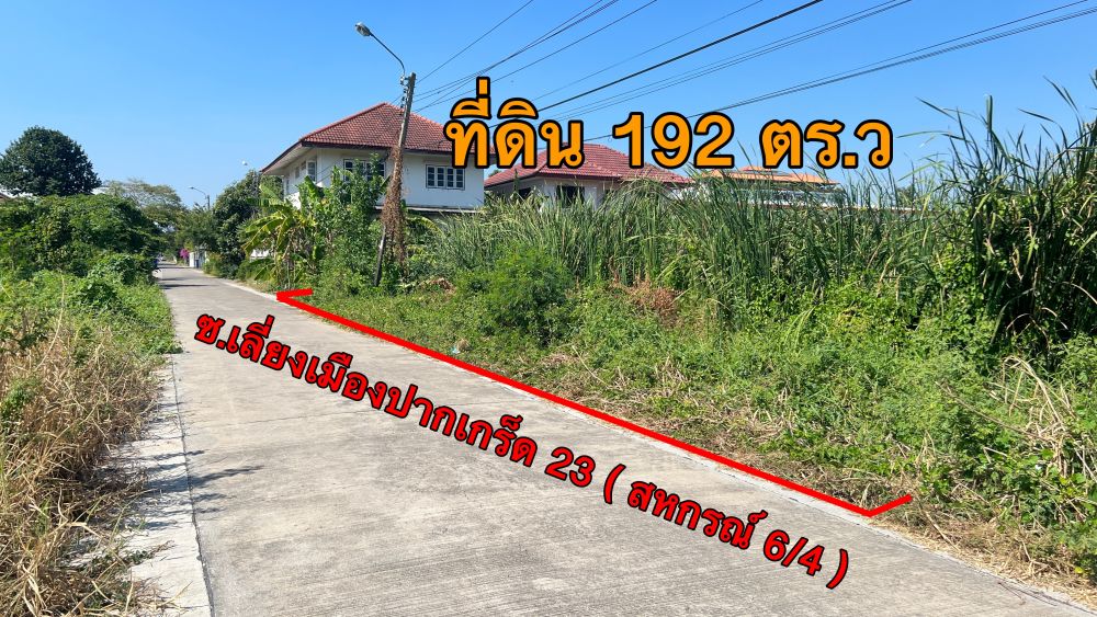 ขายที่ดินเปล่าเนื่อที่ 192 ตารางวา ซอยเลี่ยงเมืองปากเกร็ด 23 .สหกรณ์ 6/4