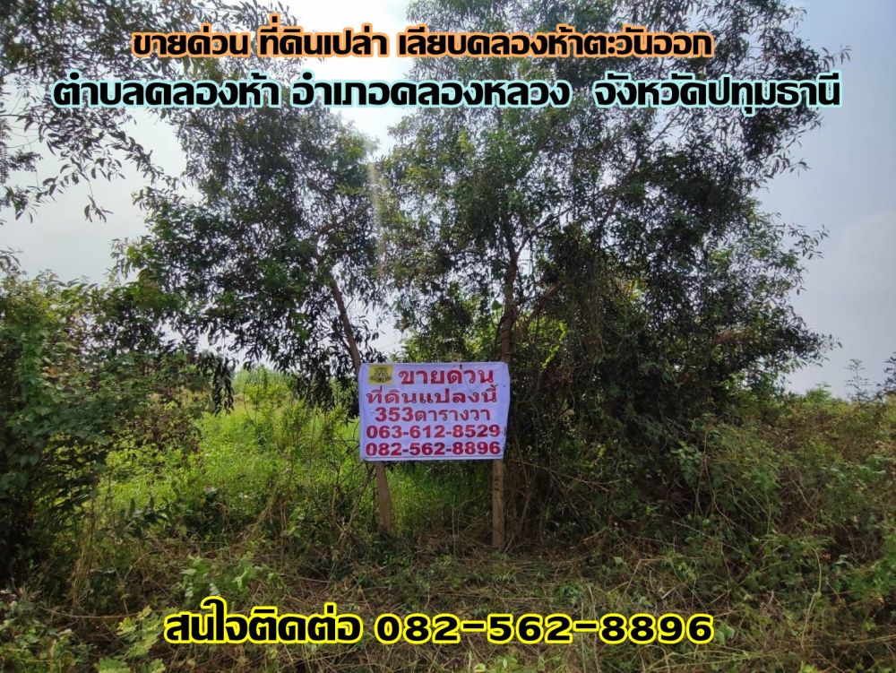 ขายด่วน ที่ดินเปล่า เลียบคลองห้าตะวันออก