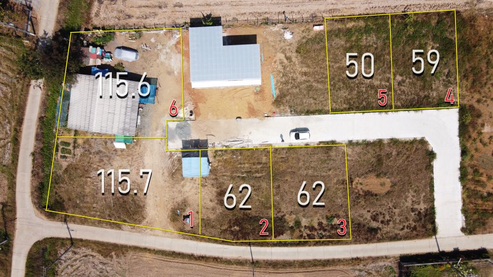 ที่ดินแบ่งขาย 6 แบ่ง (ติดถนนคอนกรีต ราคาถูก สร้างบ้านได้เลย)
