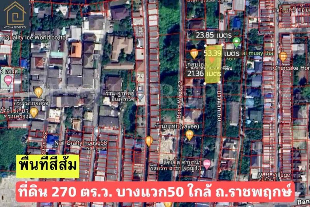 ที่ดิน 270 ตารางวา ซอย บางแวก 50พื้นที่สีส้ม ใกล้ถนนราชพฤกษ์