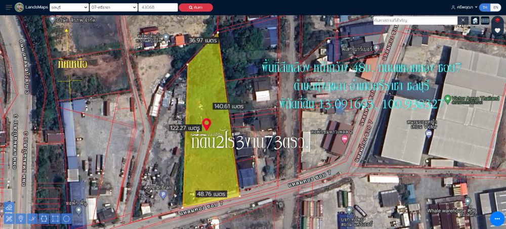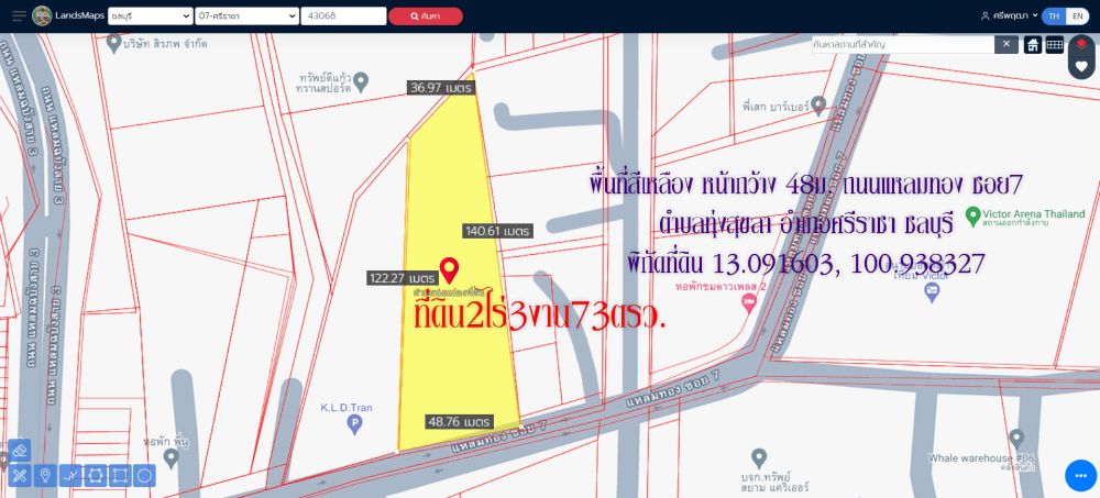 ✅ขายที่ดิน2ไร่3งาน73ตรว. พื้นที่สีเหลือง หน้ากว้าง 48ม. ถนนแหลมทอง ซอย7 ตำบลทุ่งสุขลา อำเภอศรีราชา ชลบุรี ใก้ล วิทยาลัยเทคโนโลยีแหลมฉบังEEC,วัดต้นมะม่วง (วัดเนินบุญญาราม) ศรีราชา ห่างจากถนนสุขุมวิท 3.2กม. ราคาไร่ละ 7.5ล้าน ค่าโอนคนละครึ่ง สนใจติดต่อ คุณศรี 📞094 821 6456 พิกัดที่ดิน 13.091603, 📞100.938327