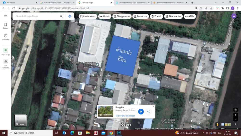 ขาย/เช่าที่ดินเปล่าในซอยเทศบาลบางปู 111 (ซอยเพลินจิต) ทำเลดี รองรับถนน 8 เลน สมุทรปราการ เจ้าของขายเอง