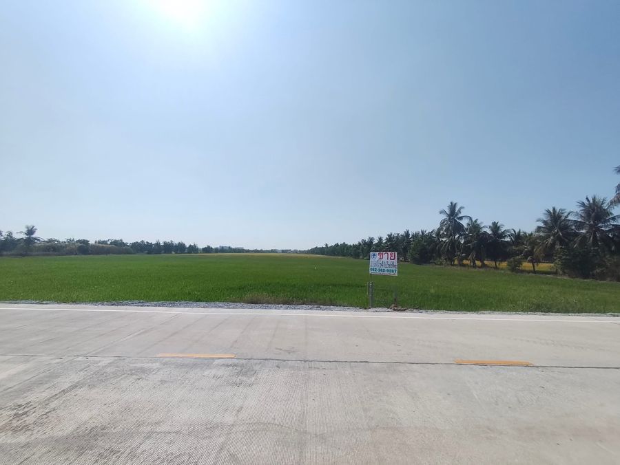 ที่ดินแปลงสวยอยู่ติดถนนวัดราษฎร์นิยม หน้ากว้างประมาณ 135 ม. ลึกประมาณ 750ม. ด้านหลังติดคลองหมอนมีชัย