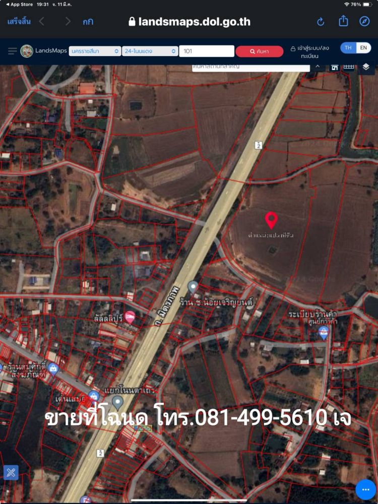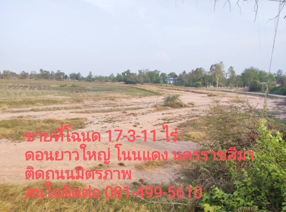 ขายถูกมาก!! ที่ดินติดถนนมิตรภาพ 17-3-11 ไร่ ทำเลดี อ.โนนแดง จ.นครราชสีมา ใกล้แยกโนนตาเถร