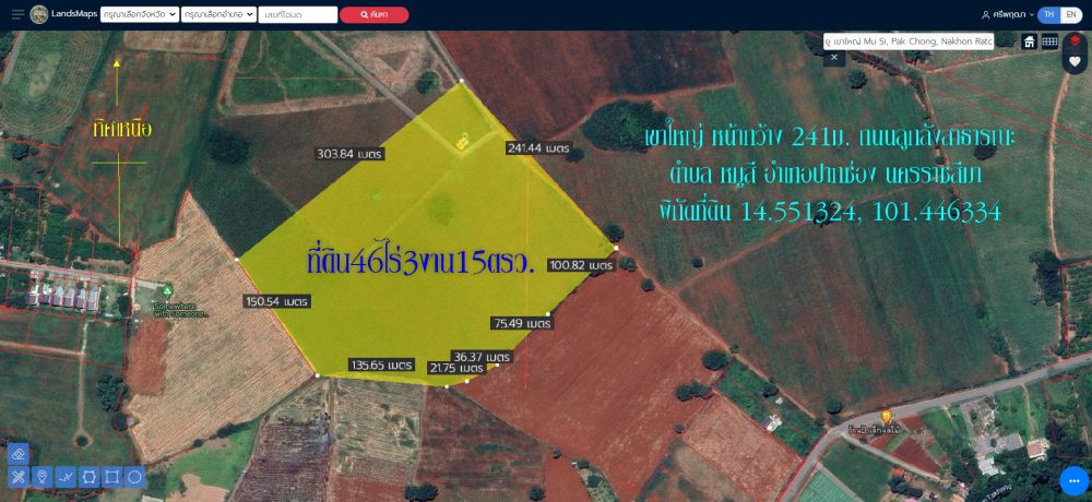 ที่ดิน46ไร่ 3งาน15ตารางวา (น.ส.3ก.) เขาใหญ่ พื้นที่สีเขียว หน้ากว้าง 241ม. ถนนลูกลังสาธารณะ ตำบล หมูสี อำเภอปากช่อง นครราชสีมา