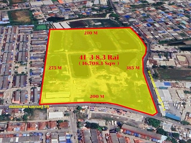 - ขนาดที่ดิน 41-3-8.3 ไร่ หรือ 16,708.3 ตรว ถมแล้วบางส่วน