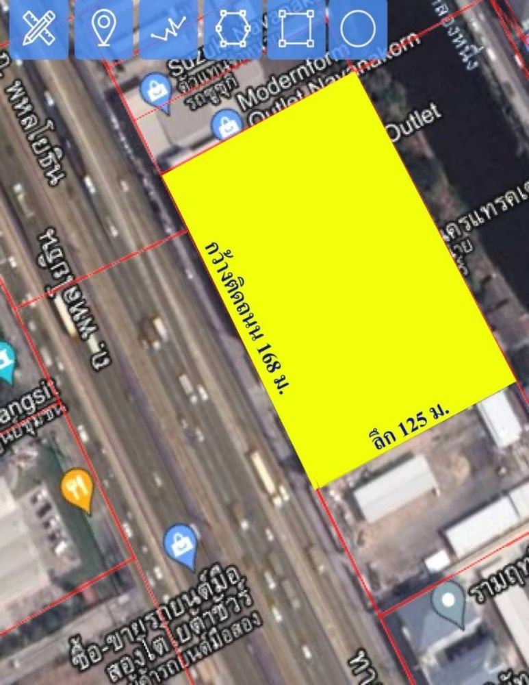 ขายที่ดิน 5ไร่ 2งาน พร้อมโชว์รูม 3ชั้น อาคารขึ้นลงสินค้า รถเทรเลอร์เข้าได้ ห้องแสดงสินค้ามีขนาด 80ม.X40ม