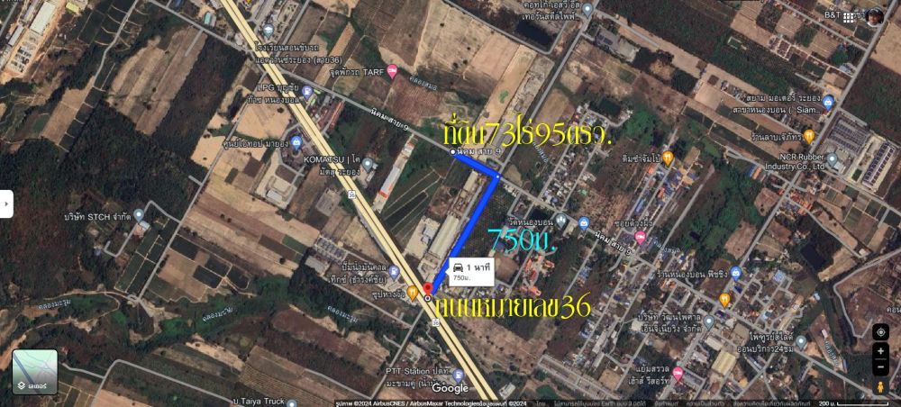 ขายที่ดินระยอง นิคมพัฒนา 22ไร่ พื้นที่สีม่วงลาย ใกล้ทางหลวงสาย 36