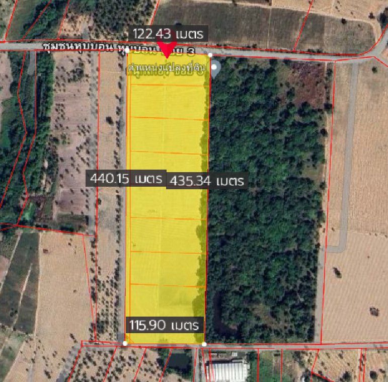 หน้ากว้างติดถนนคอนกรีต 122 เมตร X ยาว 440 เมตร