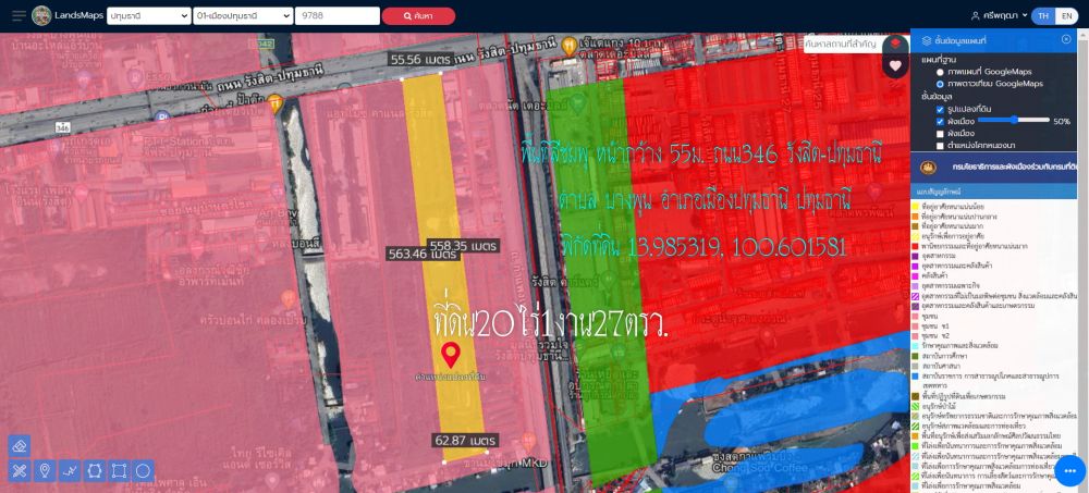 พื้นที่สีชมพู หน้ากว้าง 55ม. ถนน346 รังสิต-ปทุมธานี