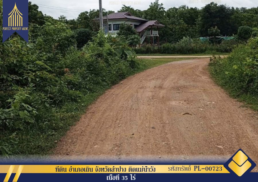 ที่ดิน อำเภอ เถิน จังหวัด ลำปาง 35 ไร่ติดถนนสายเอเชียและแม่น้ำวังพัฒนา