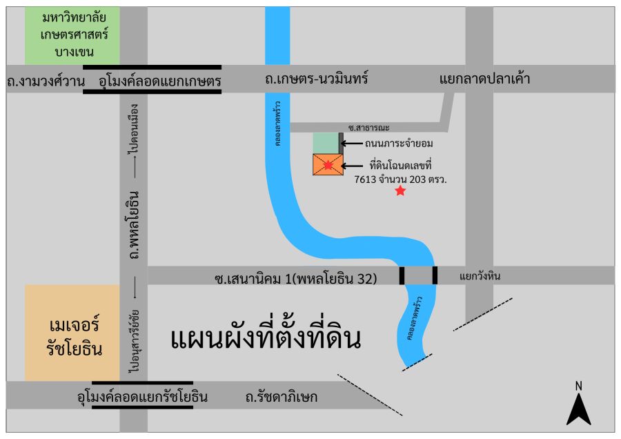 ทำเลที่ตั้งอยู่ในโซนลาดปลาเค้า ซึ่งเป็นแหล่งที่อยู่อาศัยคุณภาพ ใกล้มหาวิทยาลัยเกษตรศาสตร์ มหาวิทยาลัยศรีปทุม โรงเรียน และห้างสรรพสินค้าชั้นนำ เช่น Central ลาดพร้าว และเมเจอร์ รัชโยธิน เหมาะสำหรับสร้างบ้านเดี่ยว บ้านหรู พูลวิลล่า หรือโฮมออฟฟิศ ตอบโจทย์ทั้งผู้อยู่อาศัยและนักลงทุน