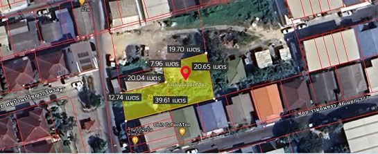 เป็นที่ดิน 160 ตร.ว.กว้างติดถนน ประมาณ 13 เมตร ลึกประมาณ 39 เมตร