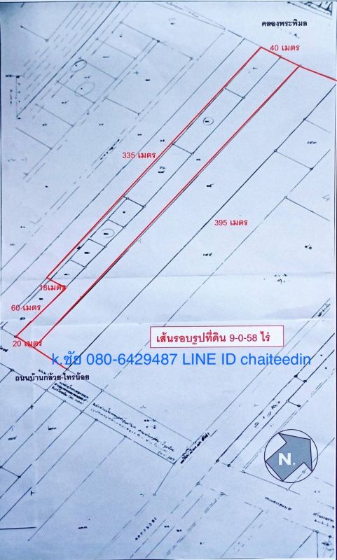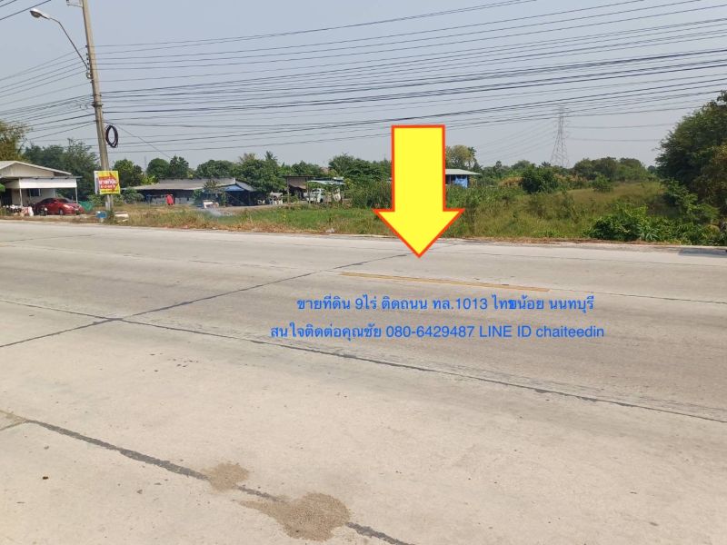 ขายที่ดิน 9ไร่ ติดถนน ทล.1013(บ้านกล้วย-ไทรน้อย) ตำบลไทรน้อย อำเภอไทรน้อย นนทบุรี ทำเลที่พักอาศัย เหมาะพัฒนาจัดสรร หรือ โกดังคลังสินค้า ไร่ละ 4.5 ล้าน (ขายยกแปลง) สนใจติดต่อคุณชัย