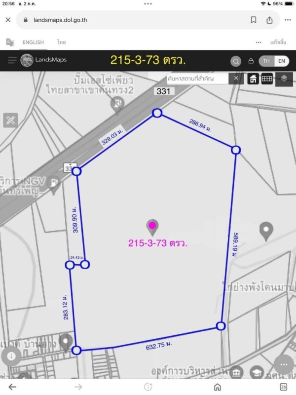- เนื้อที่ 215-3-73 ตรว.(86,373 ตรว.)