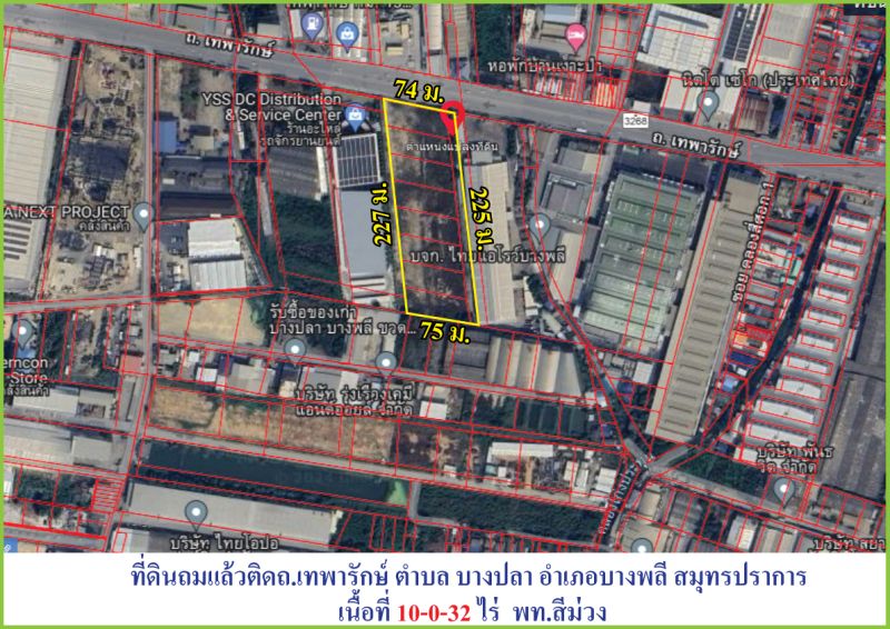 🔔🔔🔔ขายที่ดินผังสีม่วง ติดถนนเทพารักษ์ กม. 20 ขาเข้า ( โซนนี้ที่ดินผังสีม่วง ติดถนน เหลือแปลงนี่แปลงเดียวเท่านั้น ) เหมาะสร้างโรงงาน โกดัง