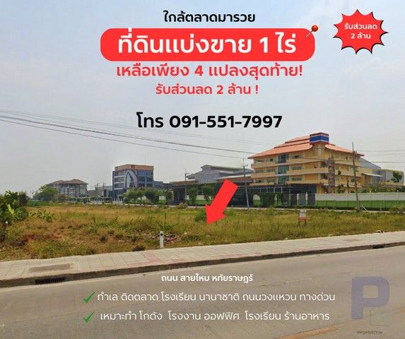 ขายที่ดิน 1 ไร่ ถนน หทัยราษฎร์ ติดถนน ใกล้ตลาด มารวย ทำเลมังกร ค้าขายร่ำรวย