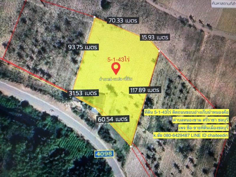 ขายที่ดินติดถนนขอบอ่างเก็บน้ำหนองค้อ 5-1-43ไร่ หน้ากว้าง 90เมตร ลึก 95เมตร ตำบลหนองขาม ศรีราชา ชลบุรี ผังเมือง EEC ห่างจาก ทล.331 ประมาณ 1.5กม.ใกล้นิคมปิ่นทอง 1,2,3,4 ห่างจากท่าเรือ ประมาณ 13 กม.เหมาะพัฒนาอสังหาริมทรัพย์ หรือ สร้างโกดัง สำนักงาน ราคาไร่ละ 3.5 ล้าน ขายยกแปลง 18.7 ล้าน สนใจที่ดินสอบถามเพิ่มเติมติดต่อคุณชัย 📞080-6429487 LINE ID chaiteedin 🌐https://web.facebook.com/chaiteedin