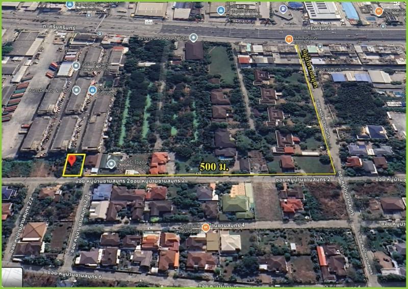 💥 ที่ดินถมแล้วในหมู่บ้านชานสมุทร ซอย 2 ติดถนนศรีนครินทร์ บางเมือง สมุทรปราการ ผังสีแดง เหมาะสร้างบ้านพักอาศัย