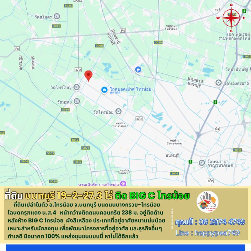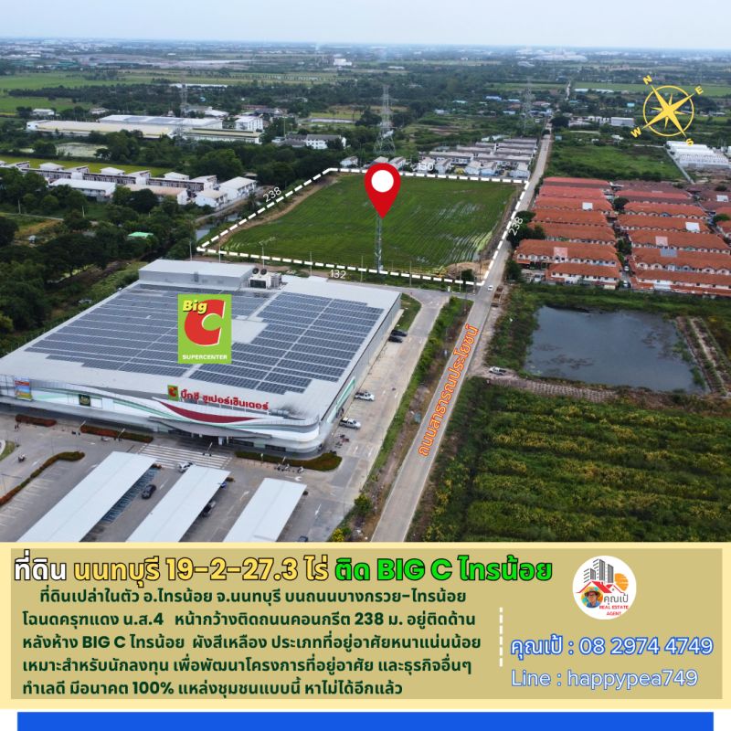 #ที่ดินนนทบุรี #ที่ดินไทรน้อย #ที่ดินติดห้าง #ไทรน้อย #นนทบุรี #บางกรวยไทรน้อย #19ไร่ #ผังสีเหลือง #ที่อยู่อาศัยหนาแน่นน้อย #บิ๊กซีไทรน้อย #BigCไทรน้อย