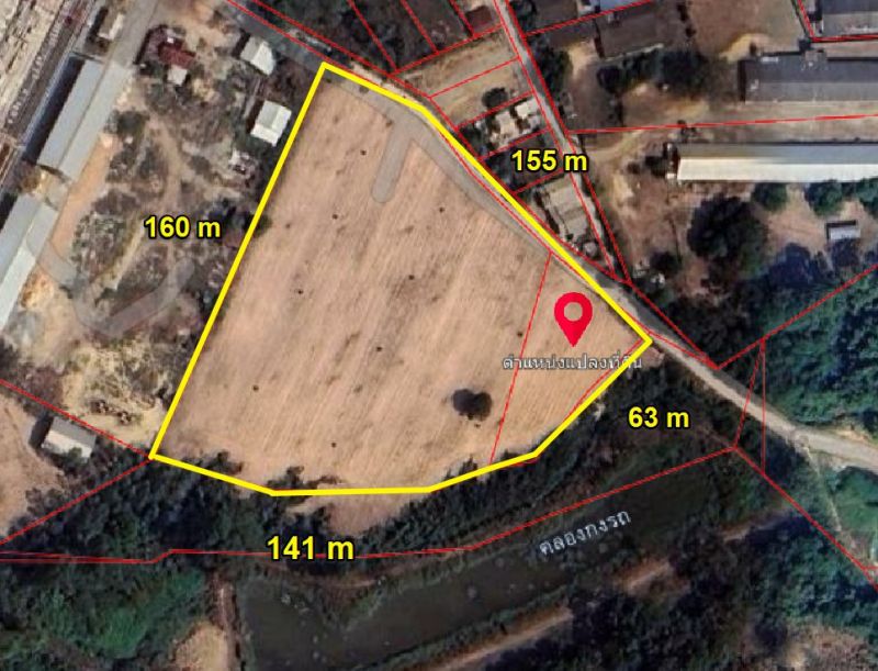 หน้ากว้างติดถนนคอนกรีต 155 เมตร X ยาว 160 เมตร