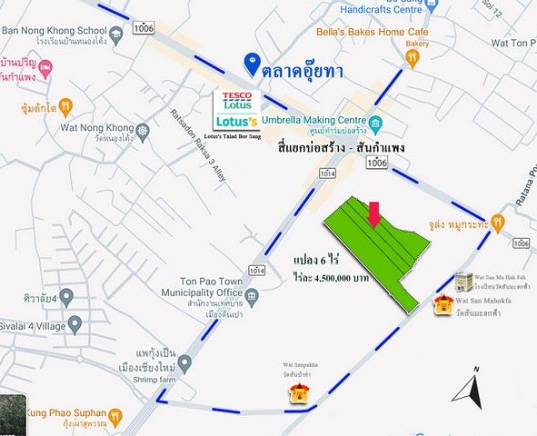 ขาย ที่ดิน 6-1-90 ไร่ เชียงใหม่ สันกำแพง ตำบลต้นเปา (ใกล้วัดสันป่าค่า)