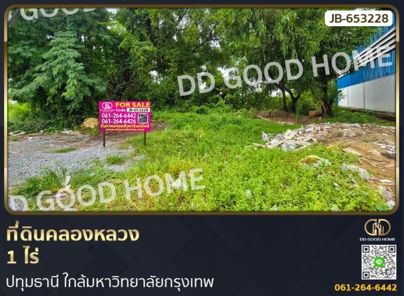 ที่ดินคลองหลวง 1 ไร่ ปทุมธานี ใกล้มหาวิทยาลัยกรุงเทพ