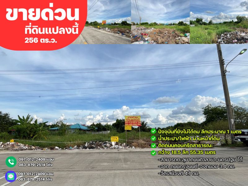 ขายด่วนที่ดิน 256 ตรว.ติดถนนเส้นหลัก เลียบคลองใหม่เจริญ ม.5-8 ต.หนองเพรางาย อ.ไทรน้อย จ.นนทบุรี