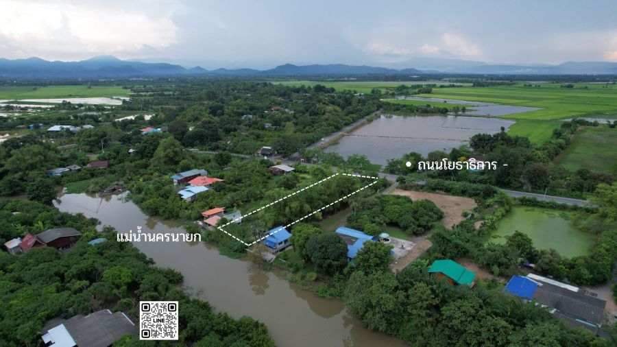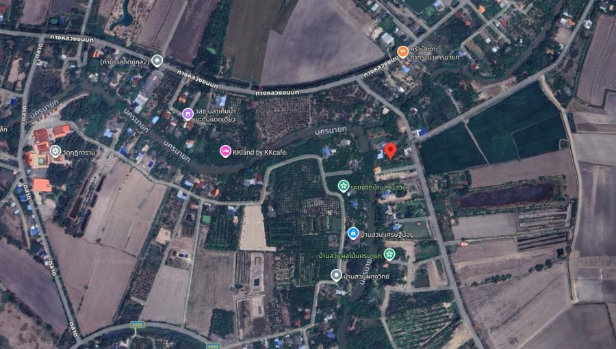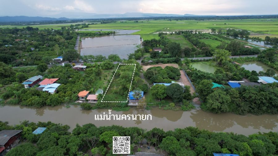 ด้านหน้าติดถนนหลวง ด้านหลังติดแม่น้ำนครนายก