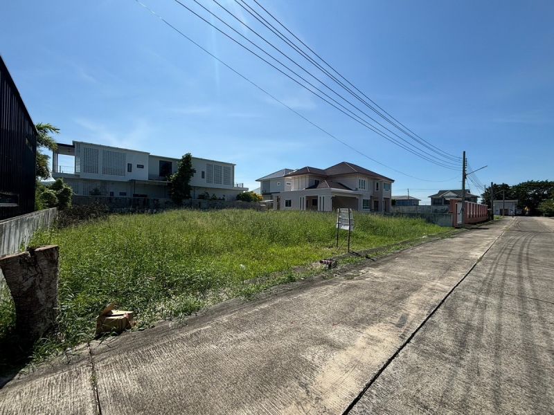 - ที่ดินถมแล้ว รูปสี่เหลี่ยมผืนผ้า แปลงสวย อยู่ซอยแรกของหมู่บ้าน