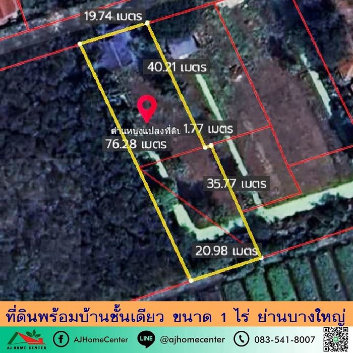 ขายที่ดินพร้อมบ้านชั้นเดียว ขนาด1ไร่ ย่านบางใหญ่ ราคาพร้อมคุย