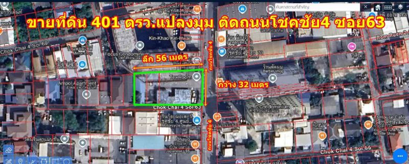 ขายที่ดินโชคชัย 4ซอย 63 เนื้อที่ 401 ตารางวา ติดถนนโชคชัย 4 แปลงมุม เหมาะสำหรับสร้างโรงแรม อพาร์ทเม้นท์ ออฟฟิศ