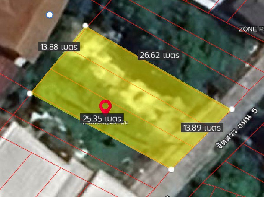 หน้ากว้างติดถนนคอนกรีต 13 เมตร X ยาว 26 เมตร