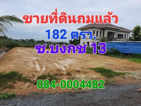 ขายที่ดินถมแล้ว เนื้่อที่ 182 ตารางวา ซอยบงกช 13 รังสิต คลองสอง