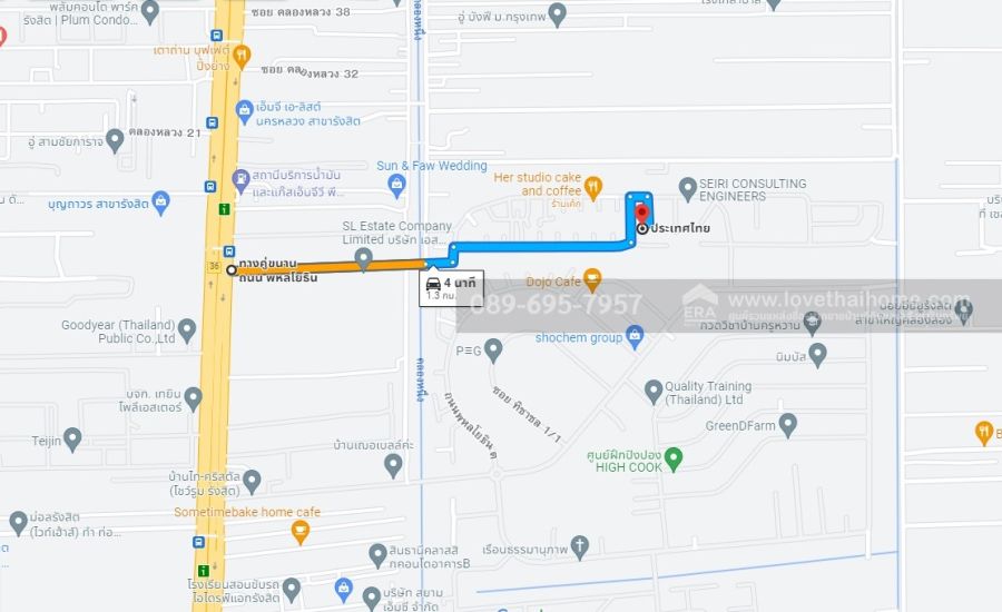 - ใกล้ โลตัส Big C รังสิต การเดินทางจากวิภาวดี- รังสิตเลยบุญถาวร จะมีสะพานกลับรถ ชิดซ้าย เข้าซออยคลองหลวง26 เข้าไปในถนนในโครงการ เจอป้อมยาม เลียบไปตามซอย1/12 มีบ้านมุมติดถนน อยู่ 1 หลังในซอยนี้