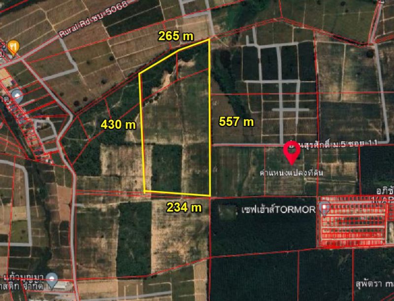หน้ากว้างติดถนนสาธารณะ 234 เมตร X ยาว 557 เมตร
