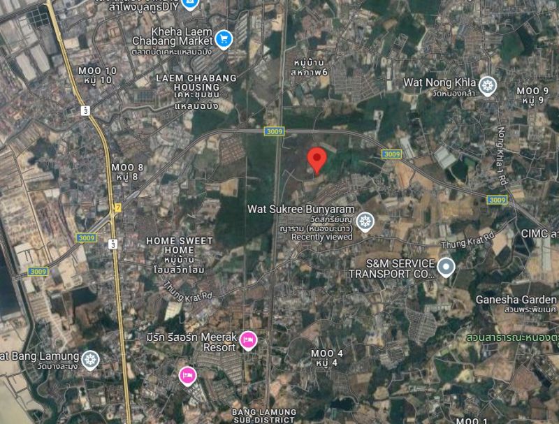 ขายที่ดินบึง หนองมะนาวเนื้อที่ 5 ไร่ ใกล้ถนนเส้นชบ.3009-380เมตร ใกล้ท่าเรือแหลมฉบัง-4กม. อ.ศรีราชา จ.ชลบุรี