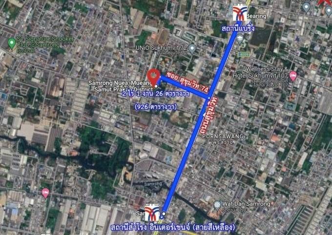 - ห่างจากถนนสุขุมวิทเพียง 550 เมตร ใกล้ BTS แบริ่ง และ BTS สำโรง (Interchange สายสีเหลือง)
