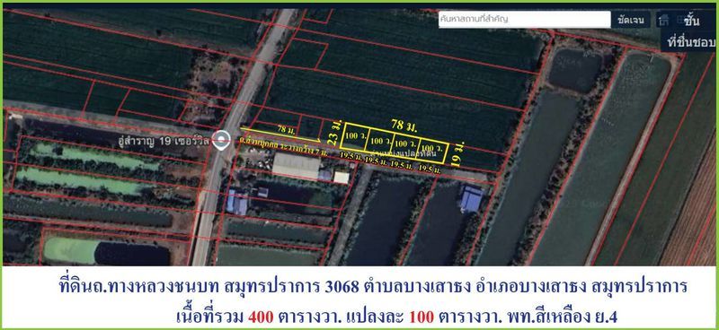 🌕 ขายที่ดินแปลงสวย 4 แปลง แบ่งขาย แปลงละ 100 ตร.ว. ในซอยวัดบัวโรย บางเสาธง สมุทรปราการ ทำเลดี ใกล้ถนนหลัก