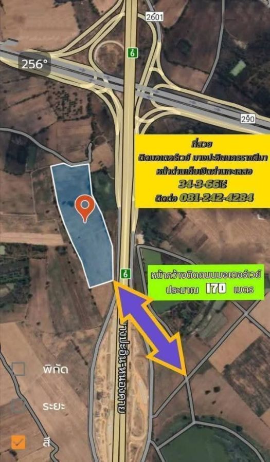 ขายที่ดิน อ.ขามทะสอ ติดถนนมอเตอร์เวย์M6บางปะอินนครราชสีมา